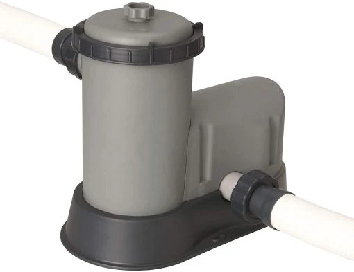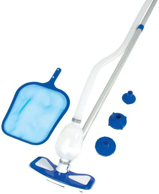 • Complete above-ground pool set comes stocked so you are ready for summer fun with a 1500-gallon filter pump. a four-step ladder. a pool cover. vacuum. and skimmer