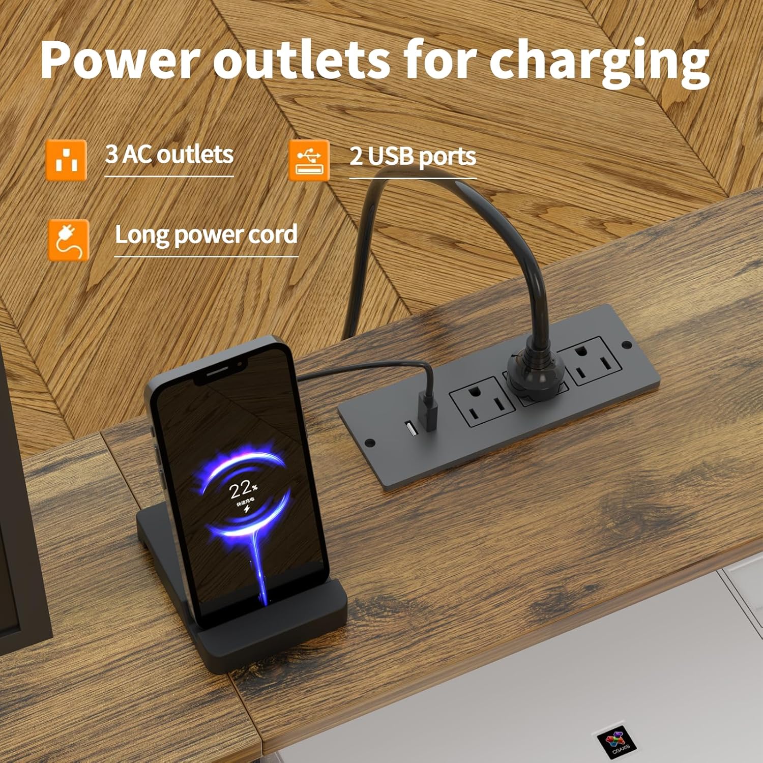 • Built-In Charging Station: Equipped with 3 AC outlets, 2 USB ports, and a long extension cord, this long desk keeps your devices powered all day. Whether you're gaming, working, or studying, enjoy fast, convenient charging at arm’s reach.