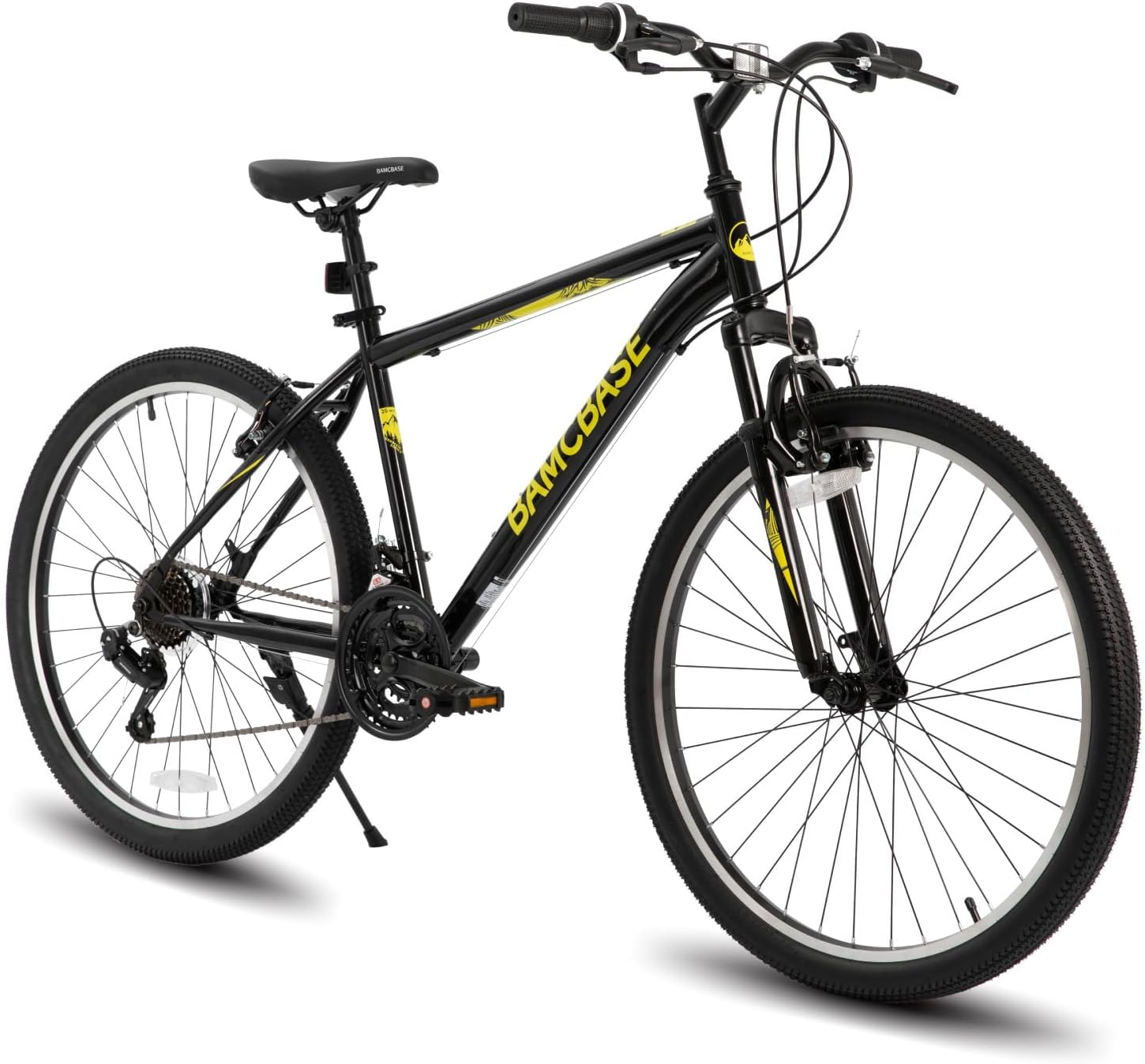 - ROBUST FRAME FOR ADULTS - The high carbon steel frame ensures durability for adult mountain bikes, featuring a reinforced front suspension fork for optimal bump absorption, providing absolute control.
