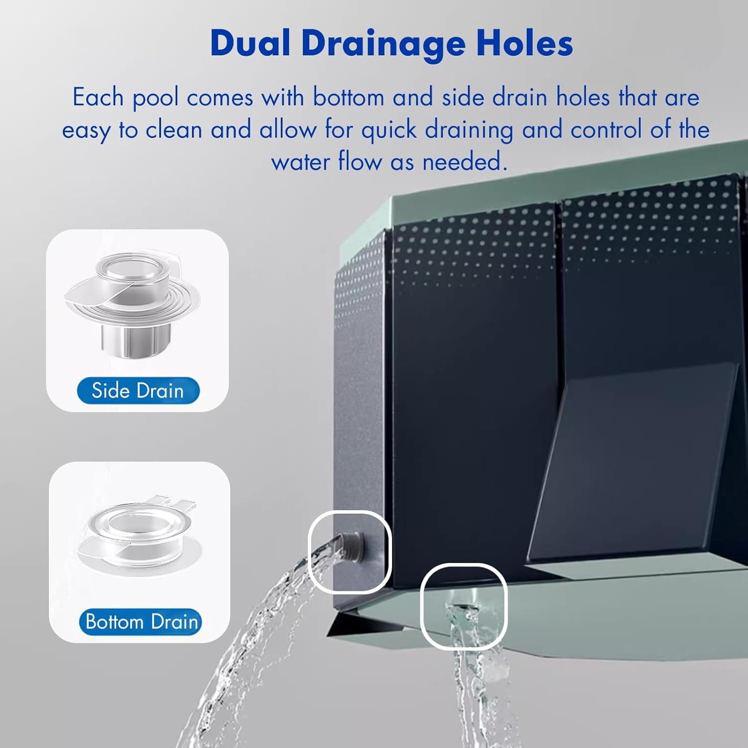 - ♨【Easy to Assemble】 A single adult can install this mini frame pool in your backyard in 3 minutes without any tools.2 flow control drain valves can easily empty the excess water. Enjoy hot summer fun in minutes! Suitable for 1-12 swimmers.