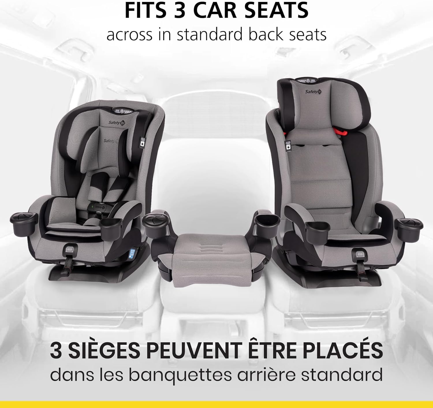 - FITS 3 ACROSS IN STANDARD BACK SEATS This convertible car seat’s slim design allows parents to comfortably fit more in the back seat without sacrificing comfort or safety.