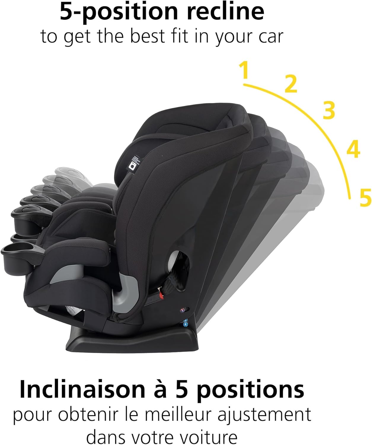 - ADJUSTABLE BASE AND HEADREST The EverSlim All-in-One Convertible Car Seat features a 5-position adjustable base and a 10-position adjustable headrest for maximum comfort and safety.