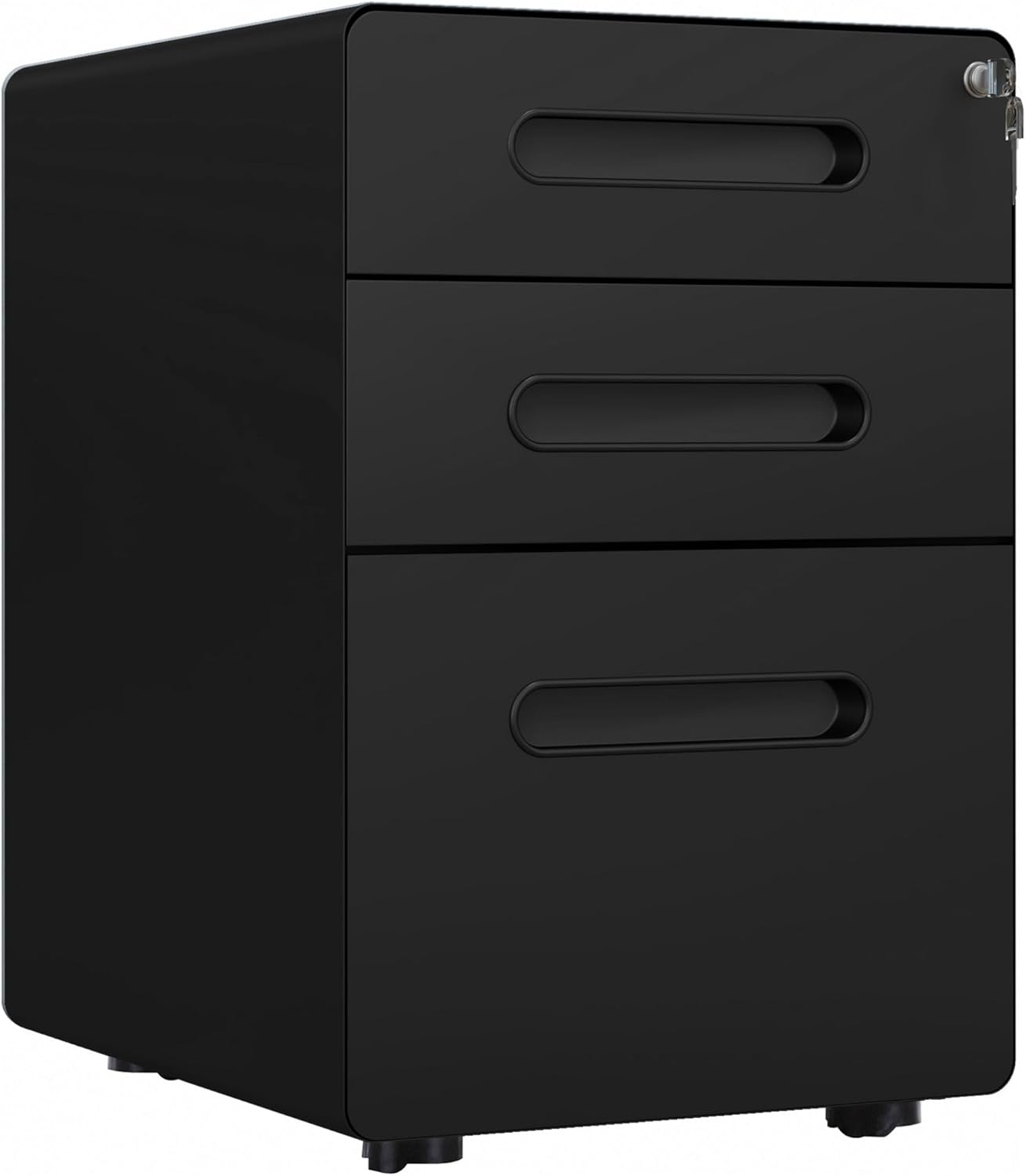 3 Drawer Vertical Filing Cabinet with Lock and Wheels, Under Desk Mobile File Cabinet for Legal, A4, Letter Size, Steel Frame for Home Office, Black