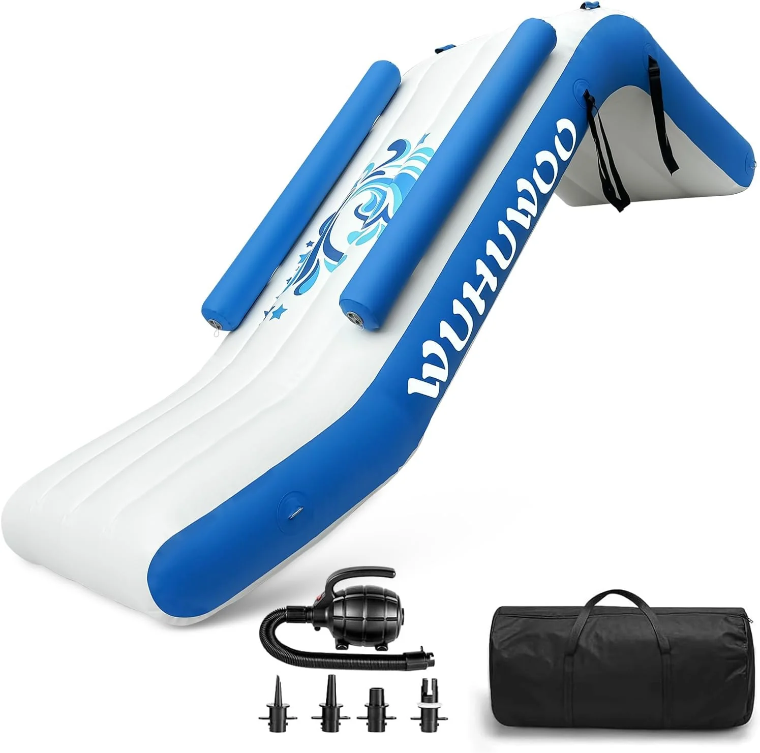 Pontoon Waterfall Slide, Inflatable Pontoon Boat Water Slide for Kids Backyard Pool Sea, Electric Air Pump & Storage Bag