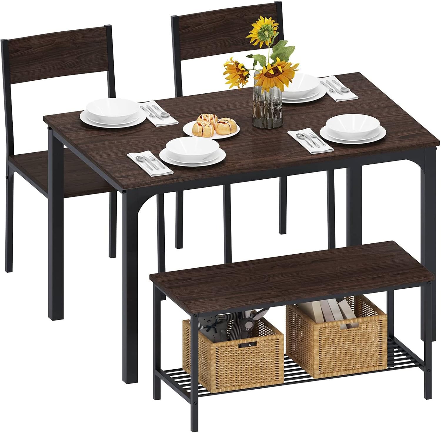 Dining Table and Chairs Dining Table Set with 2 Chairs and 1 Bench Bar Set Kitchen Table and Chairs for Dining Room Bistro Set,Pure White
