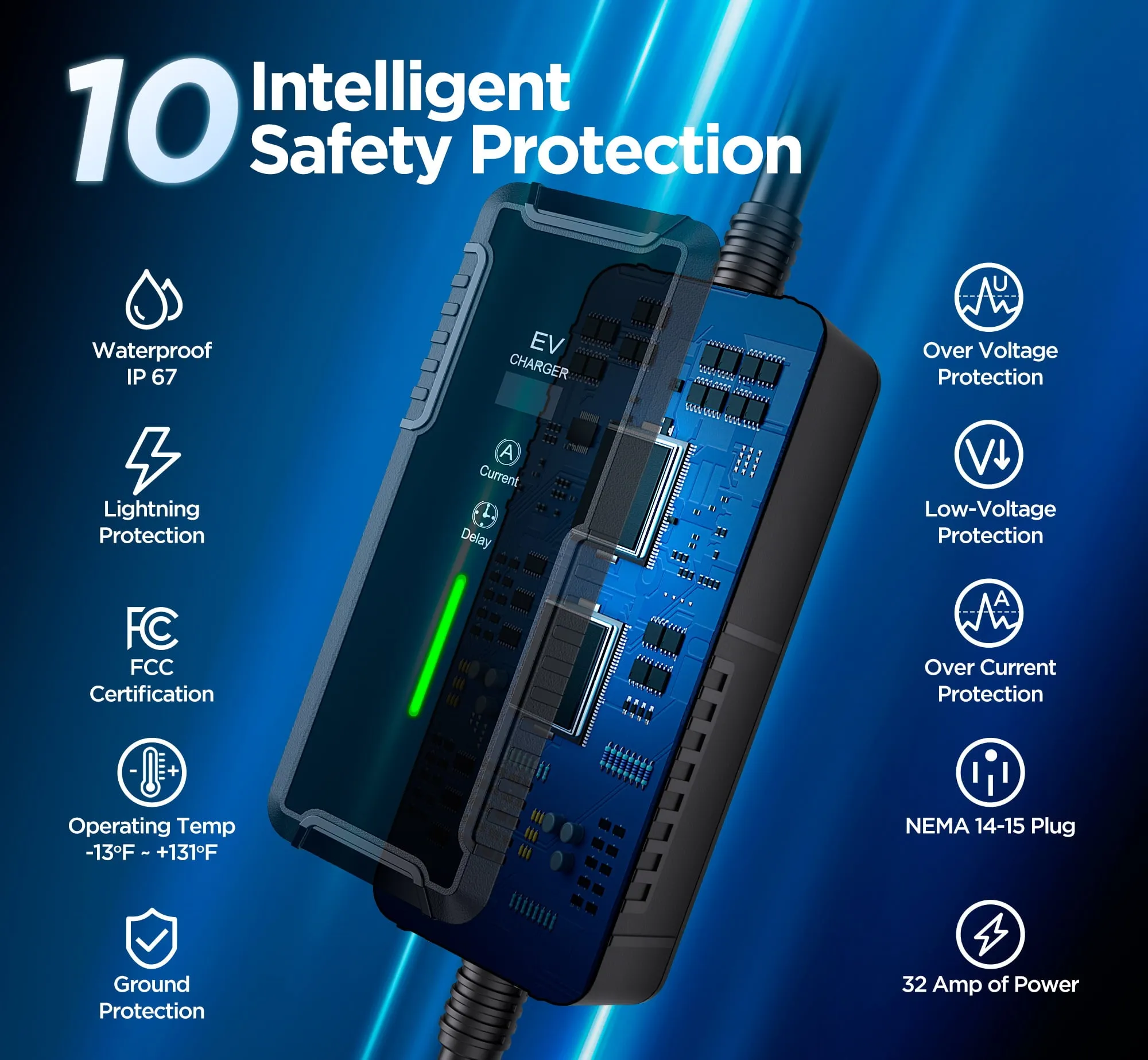 Level 2 & Level 1 EV Charger, 16Amp 110-240V Portable J1772 Electric Car Charger with Adjustable Amp Delayed Timer 25ft Long Cord