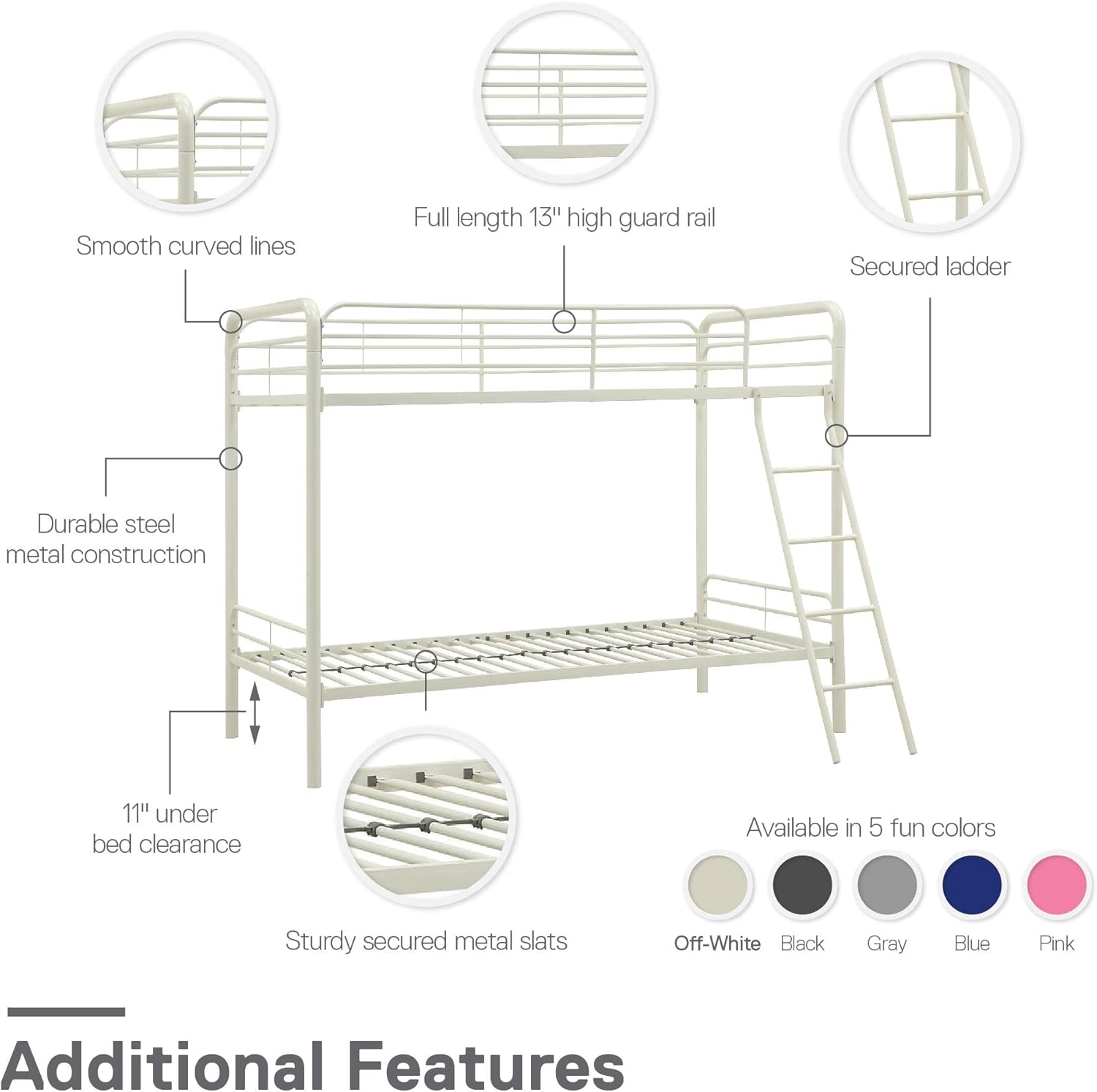 DHP Dusty Twin Over Full Metal Bunk Bed, Off White