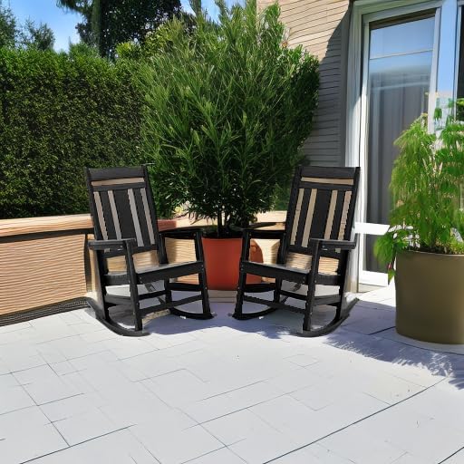 - Sturdy & Durable Recycled poly material of the rocking chairs like real wood, but resin is stronger and more durable, not chip, crack, peel or rot. What’s more, it is fade-resistant exposed to the sun and non-rot to the rainy, even the hardware are all weather resistant, great for humid area at the least maintenance, just wipe with clean water to keep it fresh