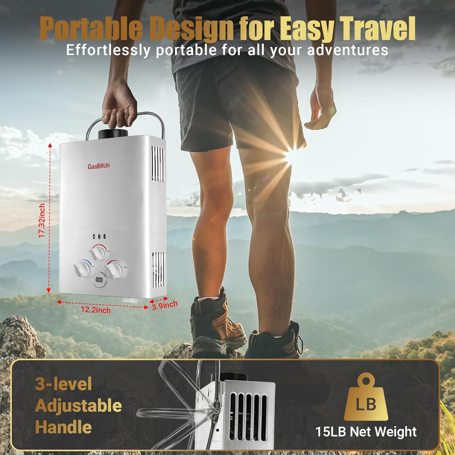 - Lightweight & Portable Water Heater : The 10 pounds lightweight portable water heater's folding handle keeps it out of the way and enables easy carry. Use the handle of the portable propane water heater or the mounting bracket on the back to hang it. It is idea for outdoor showers.
