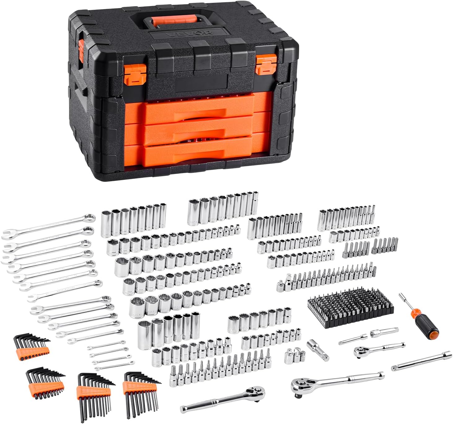 •  Durable Build for Long-Term Use: Made of CR-V chrome-plated steel, this mechanics tool set withstands rust and wear. Ideal for home or pro jobs, it's built to last and rigorously tested to handle repair tasks with strength and reliability